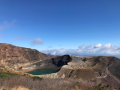 上、蔵王連峰に抱かれた五色沼(お釜)。下、宿舎のホテルヴァルトベルク前にて。